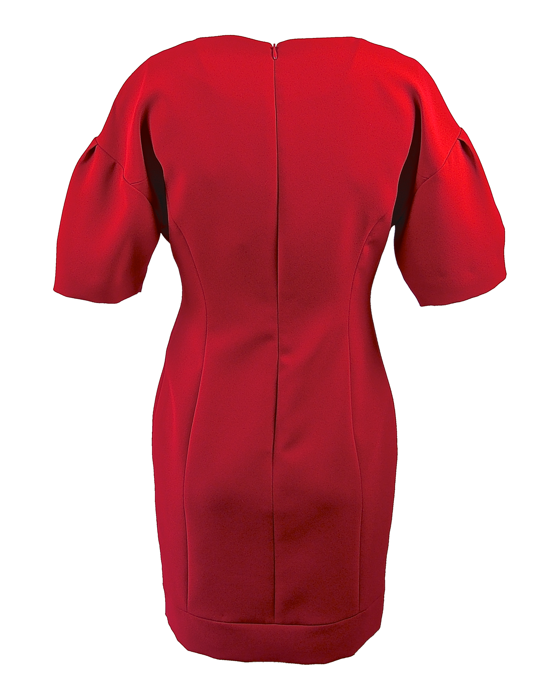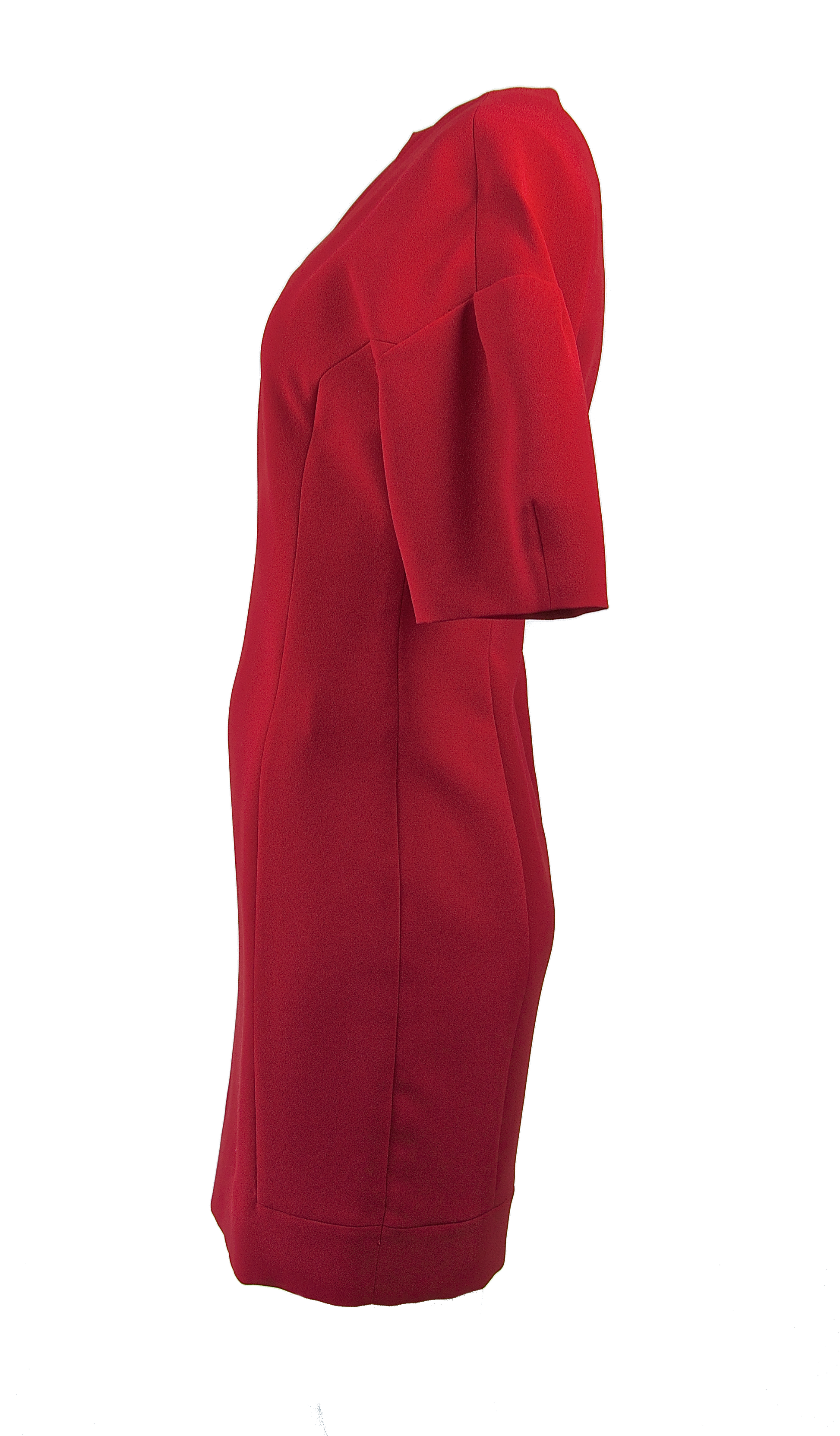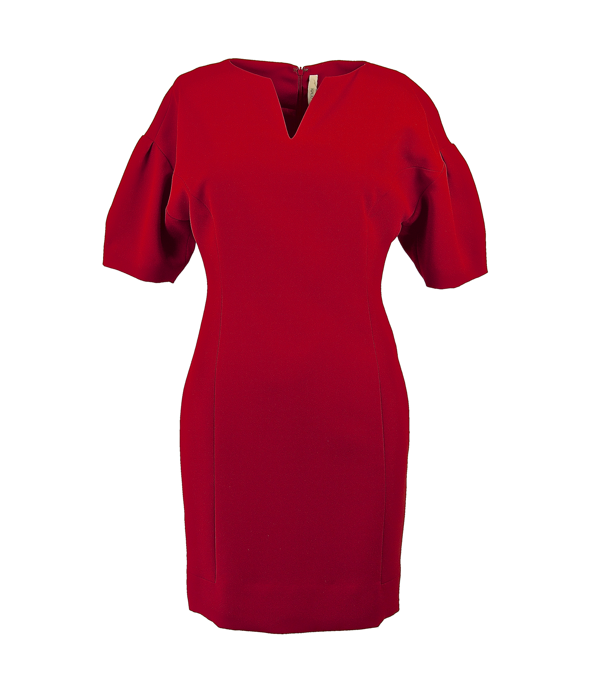 Cleane Eleganz neu interpretiert – das Label Demin verleiht dem Klassiker Etuikleid ein Facelift: Feminin figurbetonter Schnitt wird mit punktuell eingesetztem Volumen kombiniert, ein Traumkleid mit Wow-Effekt